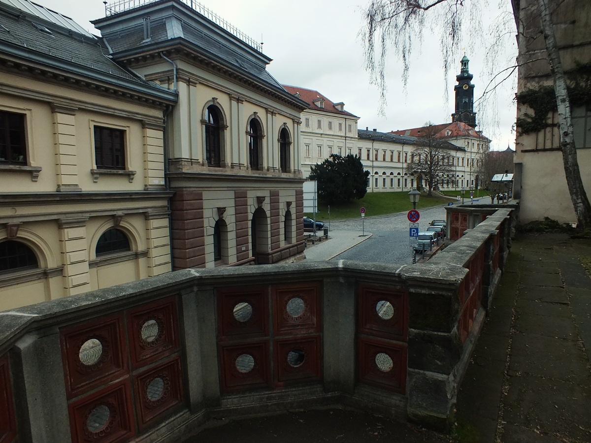 the garden was built on a terrace overlooking the city palace & the former stables, now the thuringian main state archives.