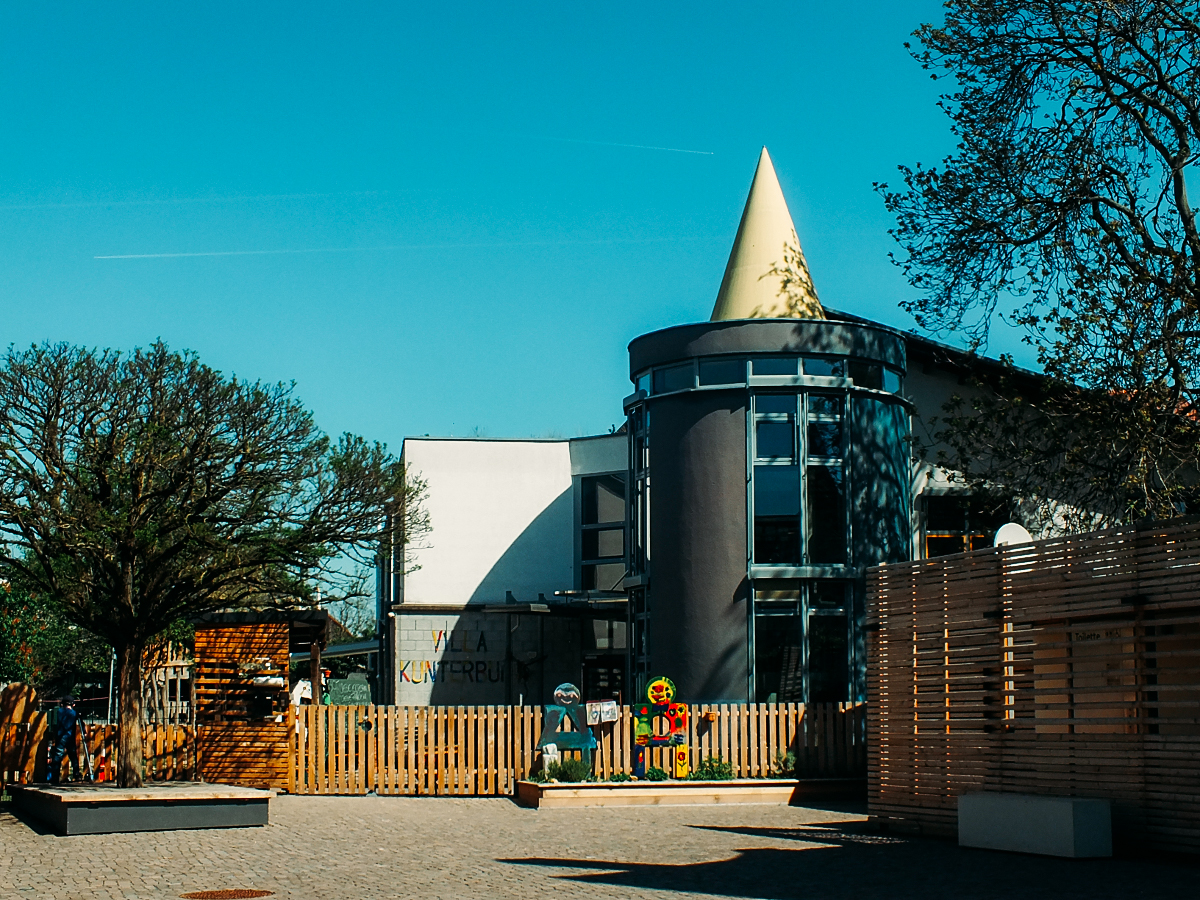 we wanted to explore more of lorsch and its surroundings, so we did that instead of buying a ticket for the museum or some guides. the weather was lovely, so it would've been a shame to spend it inside the tithe barn. on the way into the city core we passed by this post-modern kindergarten.