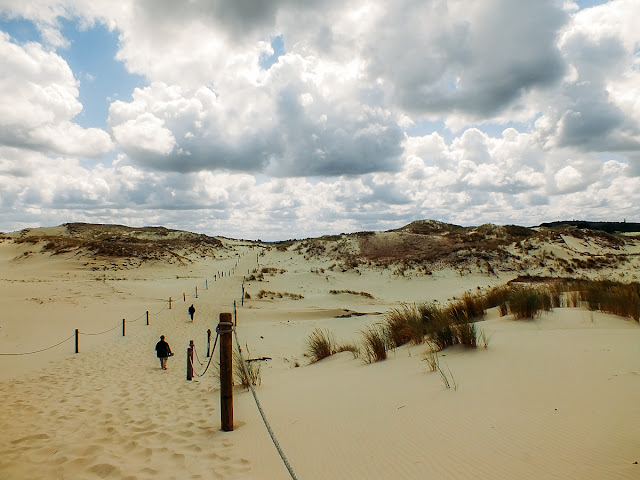 visiting the slowiński national park in various places ( czołpino and kluki ) were definitely personal highlights! this national park is special because it has wide extensive pine woods ( covering 80 percent of the park ), several big coastal lakes and to top it all off, you get to experience a big area of wandering dunes, some of which reach heights of about 42 meters! i really didn't know what to expect of the landscapes here when we parked our car in czołpino and made our way to our first stop - the lighthouse of czołpino - but i was completely steamrolled when i finally realized what a gem this national park is! as soon as we reached the beach i couldn't believe my eyes anymore, i constantly had to stop and take it all in in disbelief and awe and amazement. i think i can clearly admit that i wholeheartedly fell in love with this place ❤
